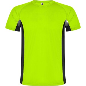Technical and breathable fabric. A combination of two polyester fabrics: Main fabric in birds eye, side panels and inner sleeve in microperforated fabric. Crew neck with inner reinforced covered seams. Removable label.